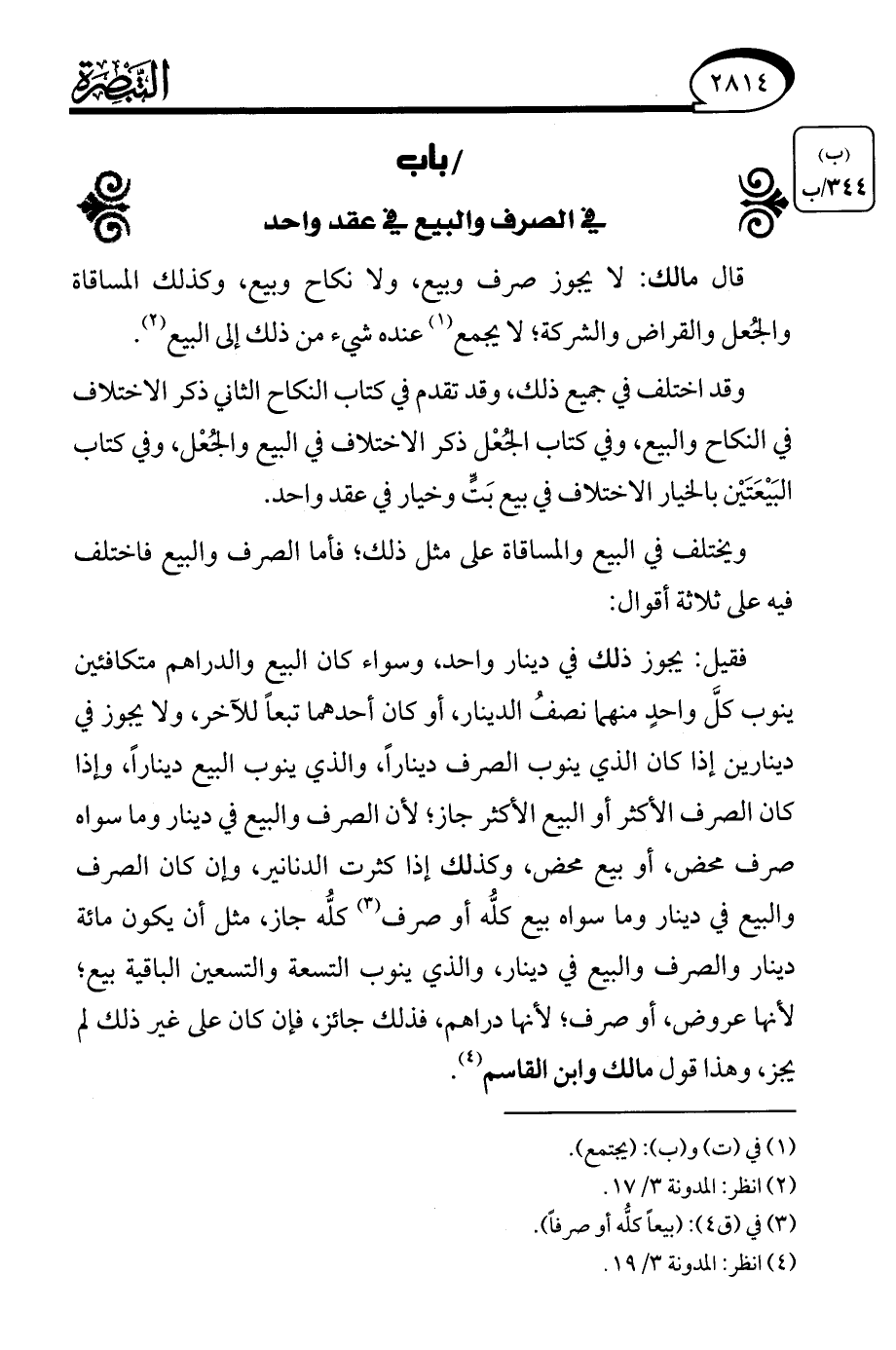 (¬4) انظر: المدونة 3/ 19.