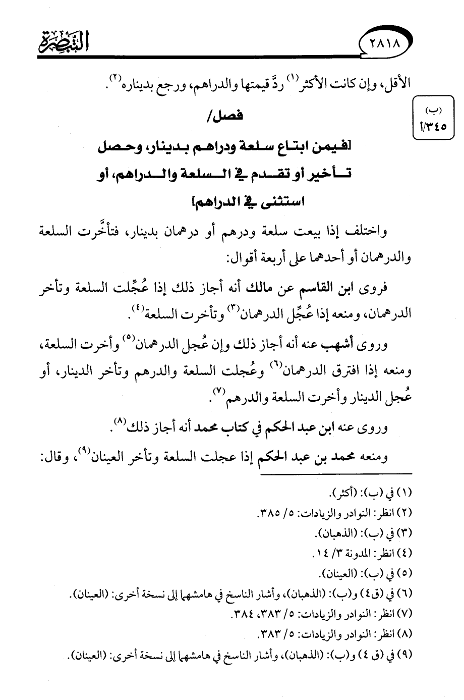 (¬8) انظر: النوادر والزيادات: 5/ 383.