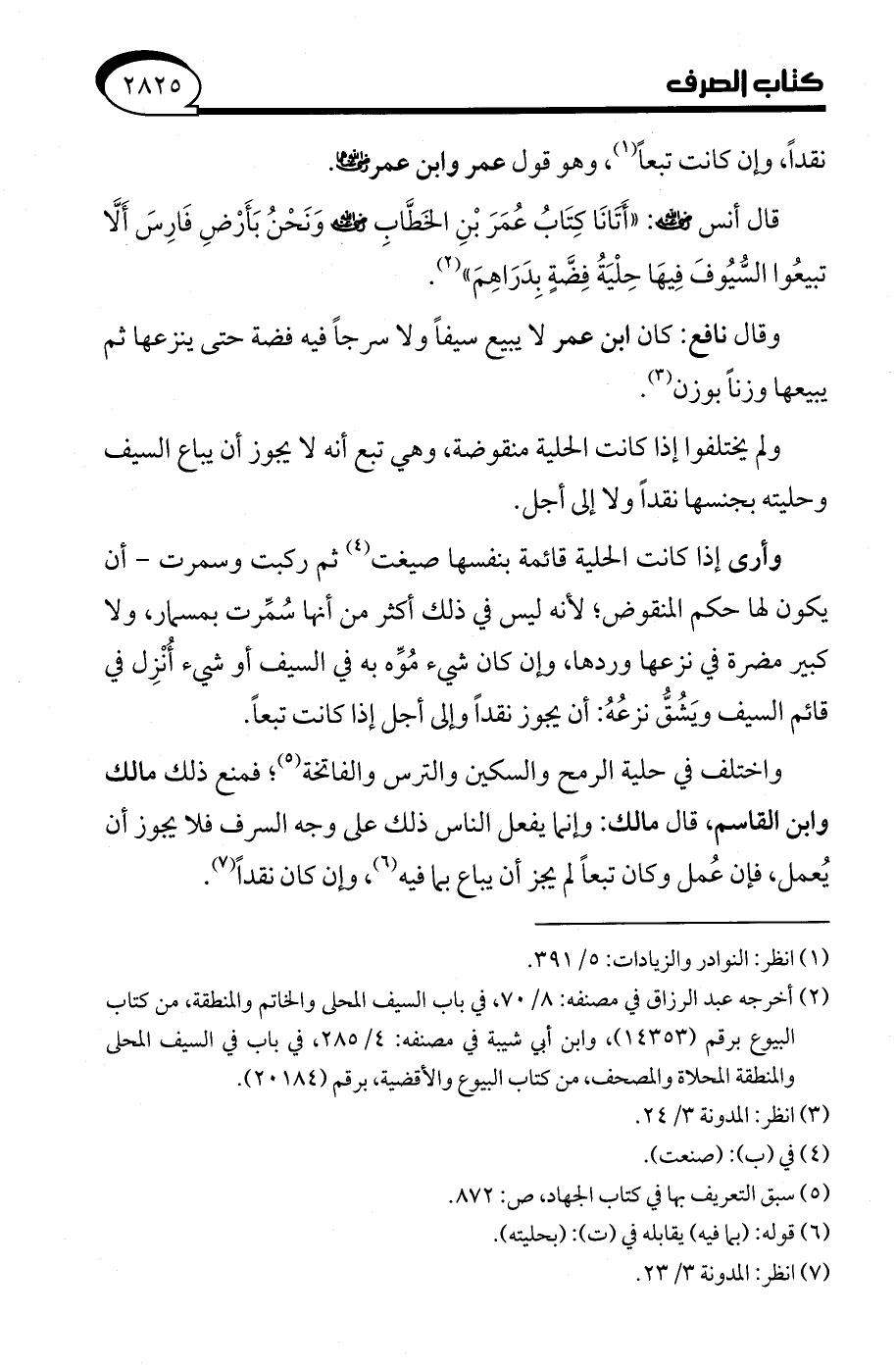(¬2) أخرجه عبد الرزاق في مصنفه: 8/ 70، في باب السيف المحلى والخاتم والمنطقة، من كتاب البيوع برقم (14353)، وابن أبي شيبة في مصنفه: 4/ 285، في باب في السيف المحلى والمنطقة المحلاة والمصحف، من كتاب البيوع والأقضية، برقم (20184).