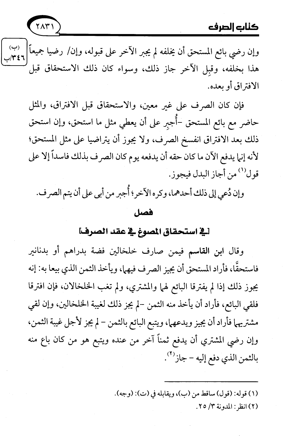 فصل [في استحقاق المصوغ في عقد الصرف]