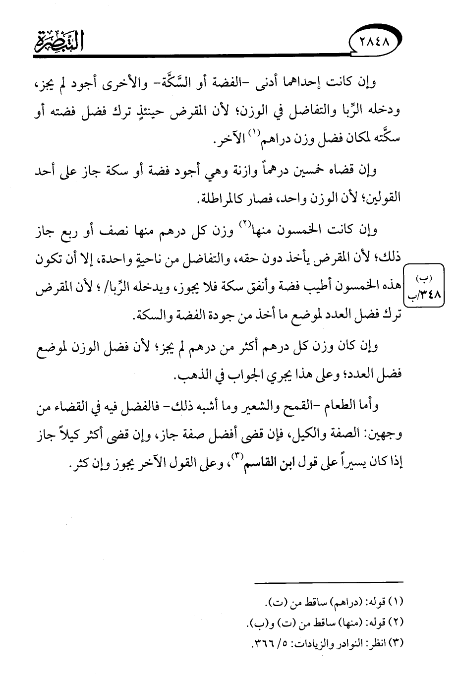 (¬3) انظر: النوادر والزيادات: 5/ 366.