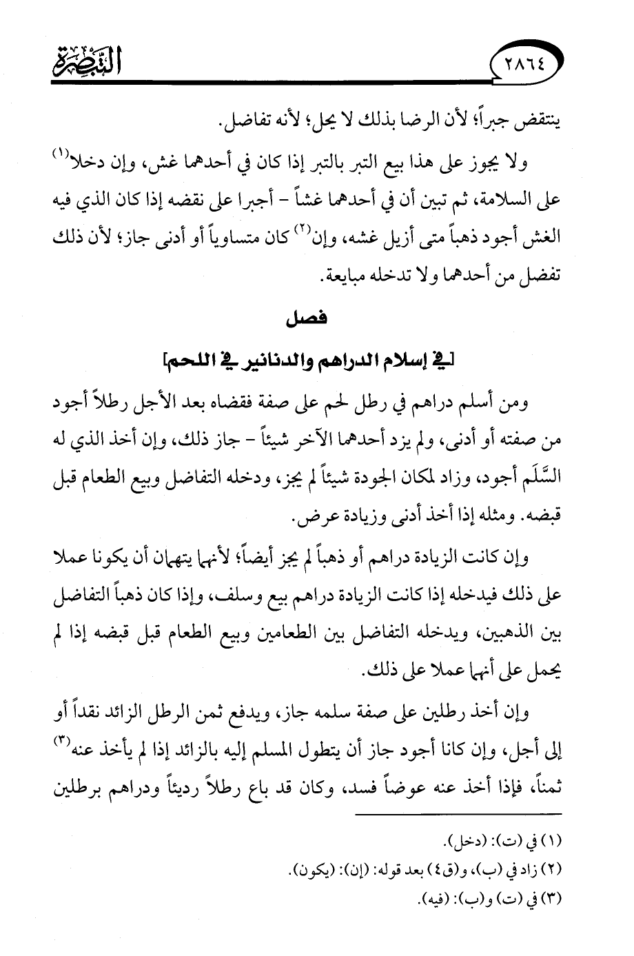 فصل [في إسلام الدراهم والدنانير في اللحم]