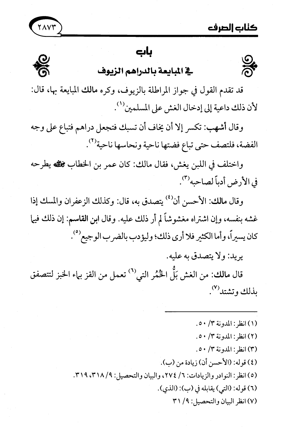 (¬5) انظر: النوادر والزيادات: 6/ 274، والبيان والتحصيل: 9/ 318، 319.