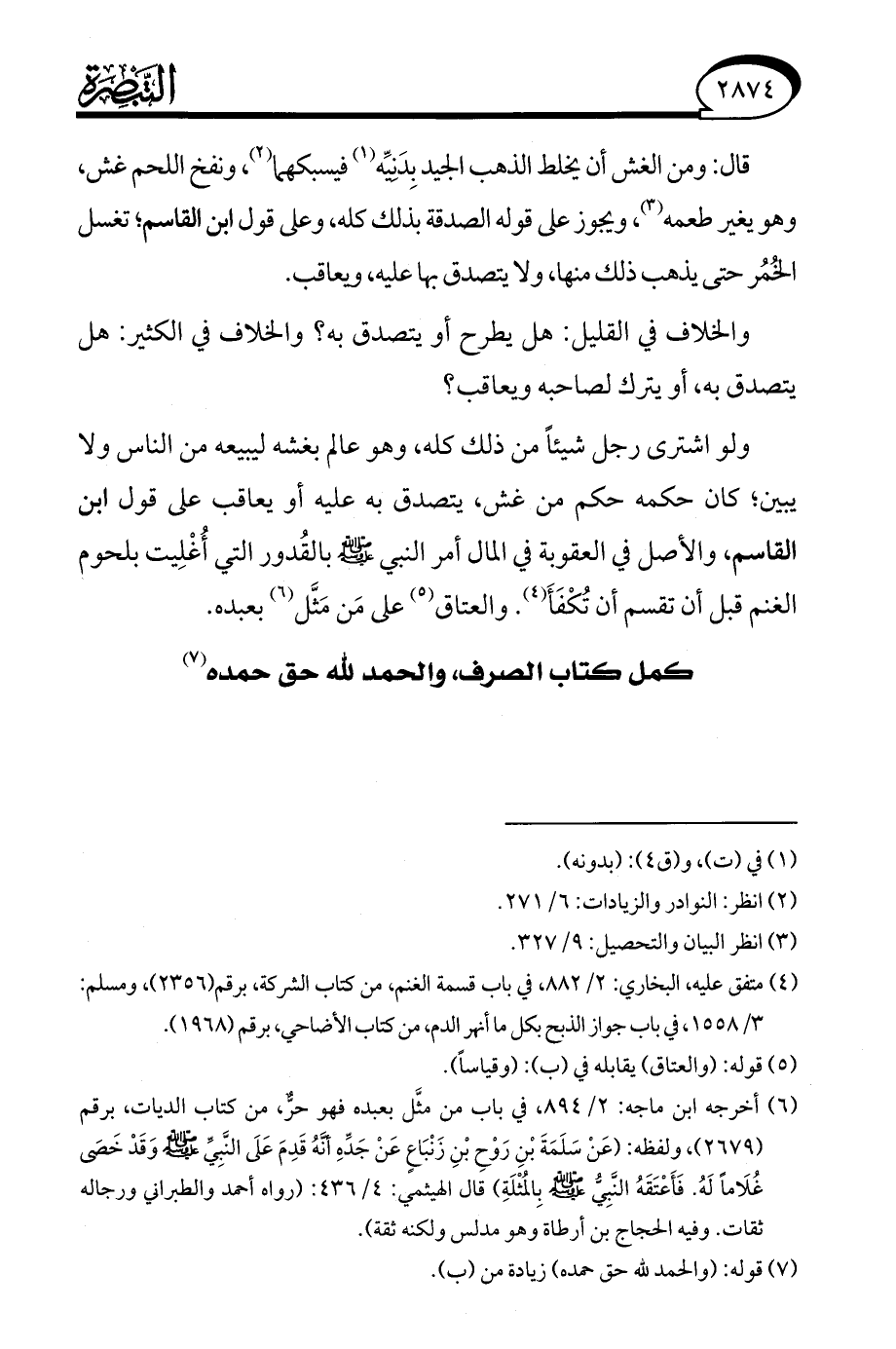 كمل كتاب الصرف، والحمد لله حق حمده (¬7)