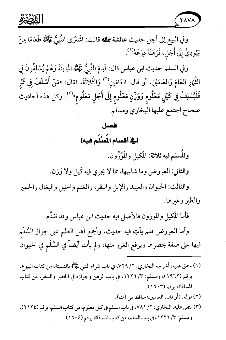 (¬3) متفق عليه، البخاري: 2/ 781، في باب السلم في كيل معلوم، من كتاب السلم، برقم (2124)، ومسلم: 3/ 1226، في باب السلم، من كتاب المساقاة، برقم (1604).
