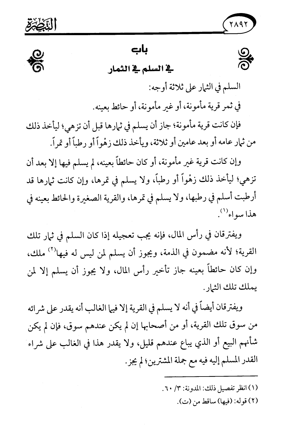 ويفترقان في رأس المال، فإنه يجب تعجيله إذا كان السلم في ثمار تلك القرية؛ لأنه مضمون في الذمة، ويجوز أن يسلم لمن ليس له فيها (¬2) ملك، وإن كان حائطًا بعينه جاز تأخير رأس المال، ولا يجوز أن يسلم إلا لمن يملك تلك الثمار.