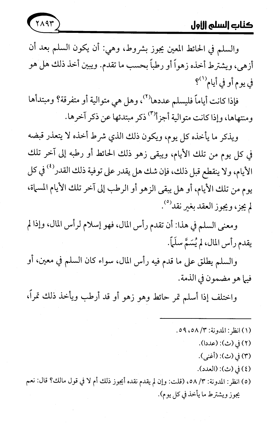 (¬5) انظر: المدونة: 3/ 58، (قلت: وإن لم يقدم نقده أيجوز ذلك أم لا في قول مالك؟ قال: نعم يجوز ويشترط ما يأخذ في كل يوم).