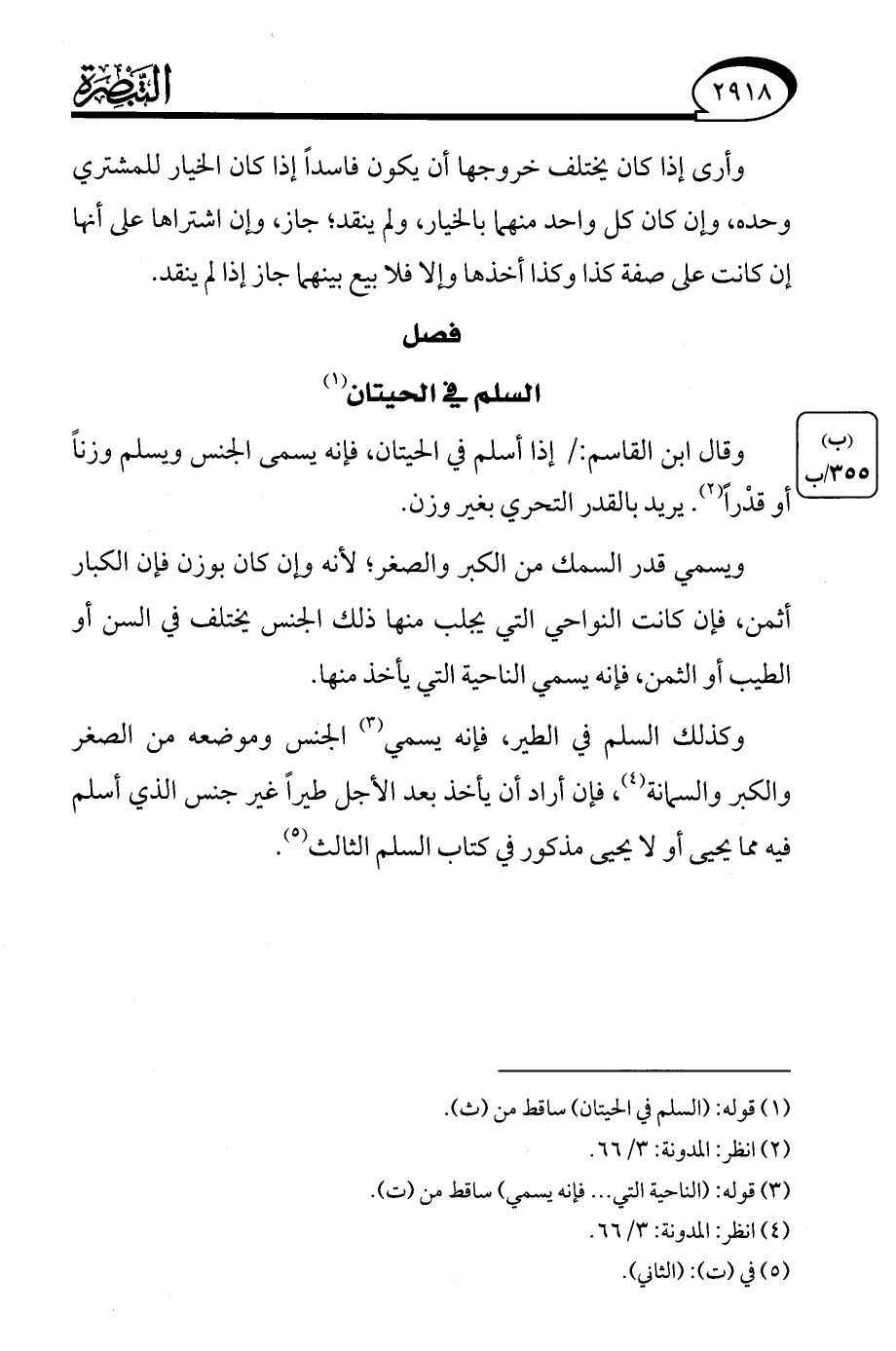 (¬1) قوله: (السلم في الحيتان) ساقط من (ث).