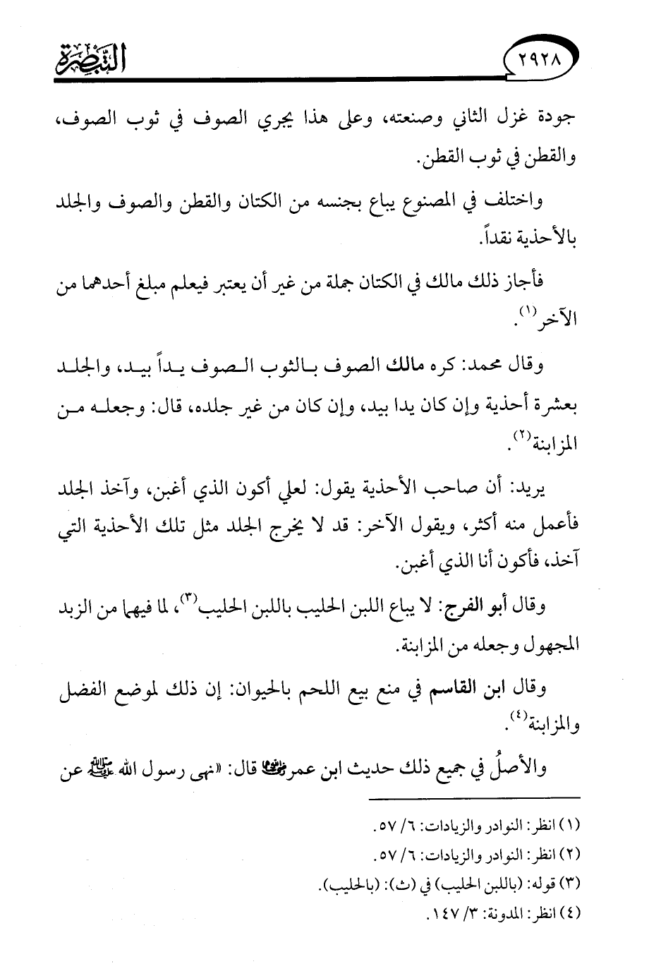 (¬4) انظر: المدونة: 3/ 147.