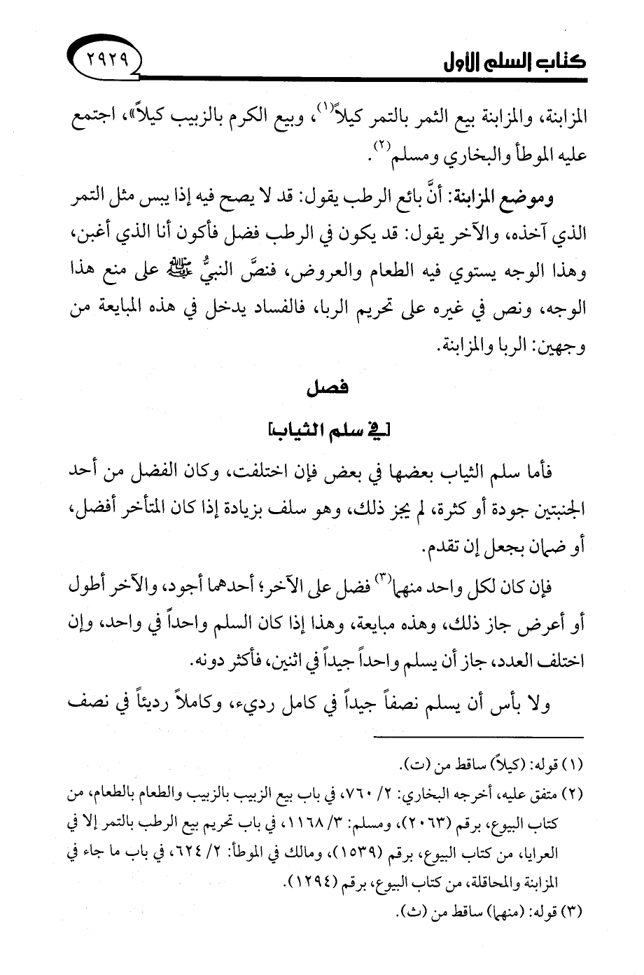 (¬2) متفق عليه، أخرجه البخاري: 2/ 760، في باب بيع الزبيب بالزبيب والطعام بالطعام، من كتاب البيوع، برقم (2063)، ومسلم: 3/ 1168، في باب تحريم بيع الرطب بالتمر إلا في العرايا، من كتاب البيوع، برقم (1539)، ومالك في الموطأ: 2/ 624، في باب ما جاء في المزابنة والمحاقلة، من كتاب البيوع، برقم (1294).