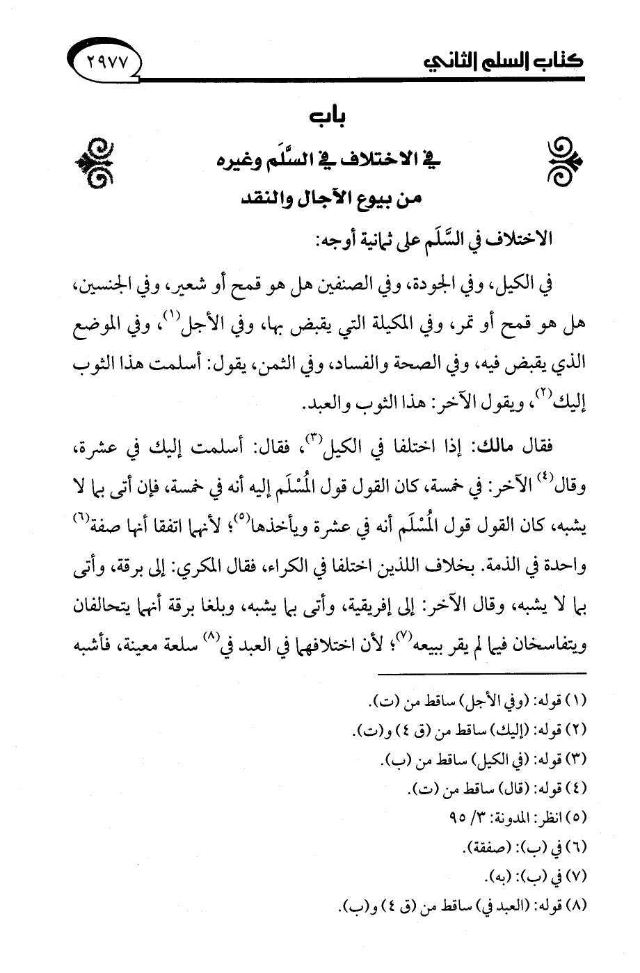 الاختلاف في السَّلَم على ثمانية أوجه: