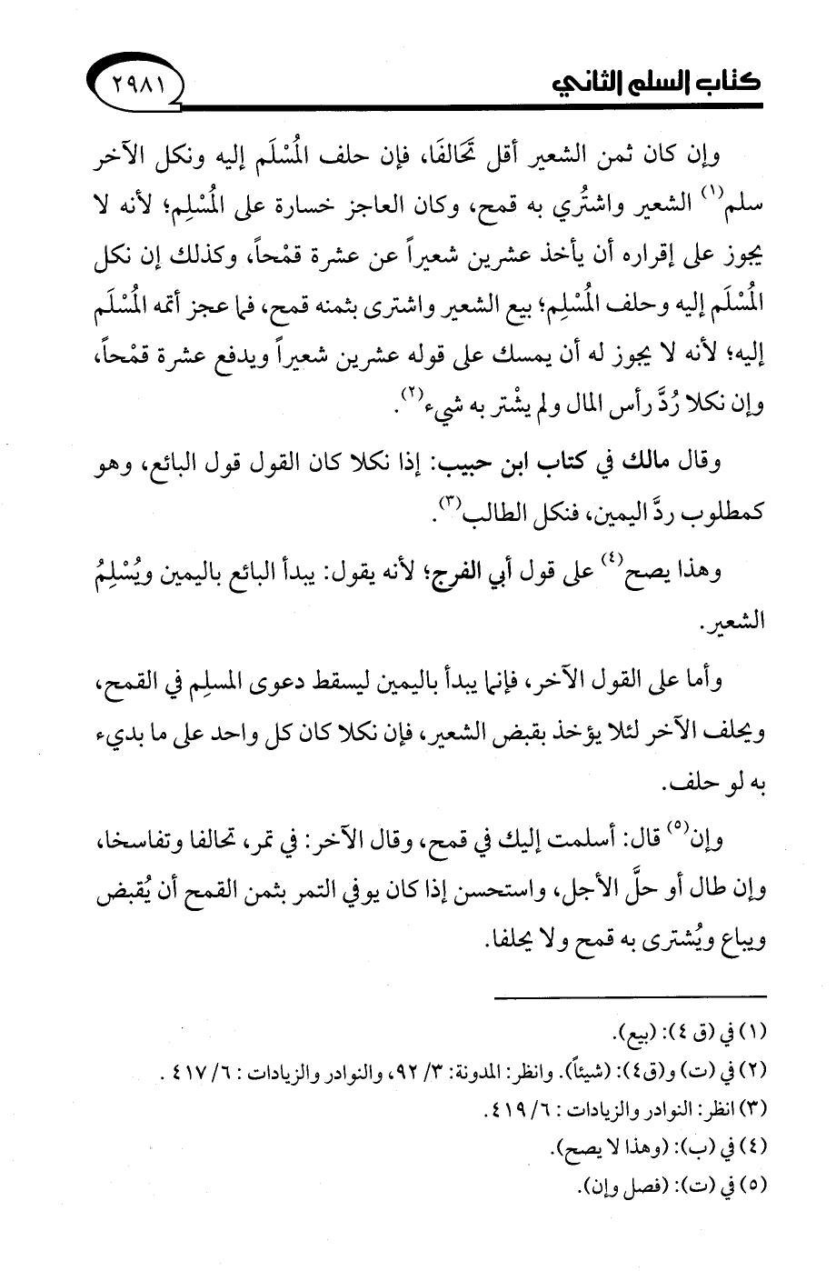 (¬3) انظر: النوادر والزيادات: 6/ 419.