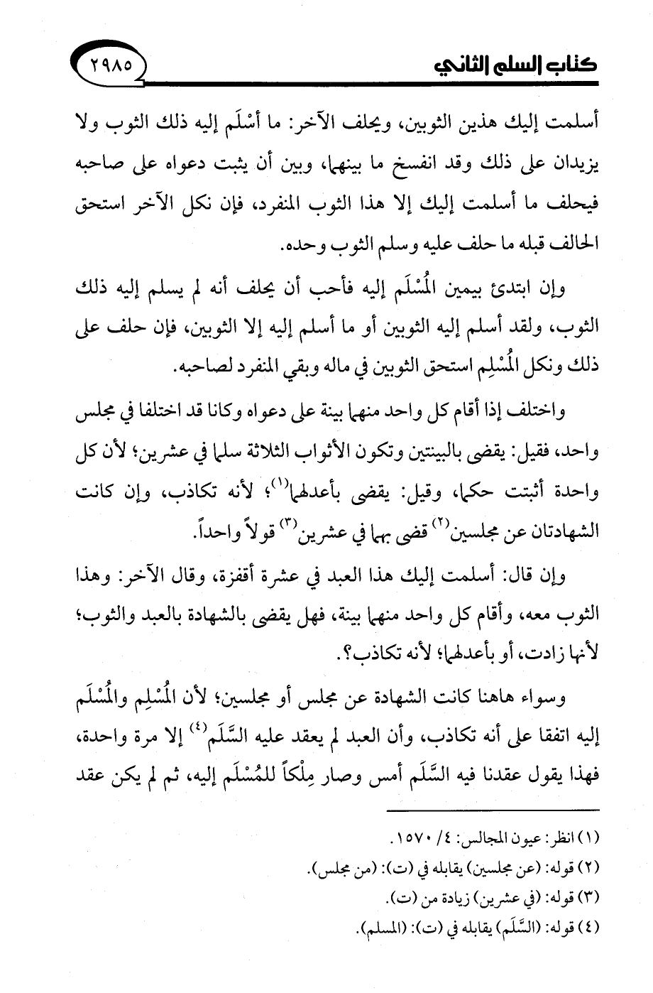 (¬4) قوله: (السَّلَم) يقابله في (ت): (المسلم).