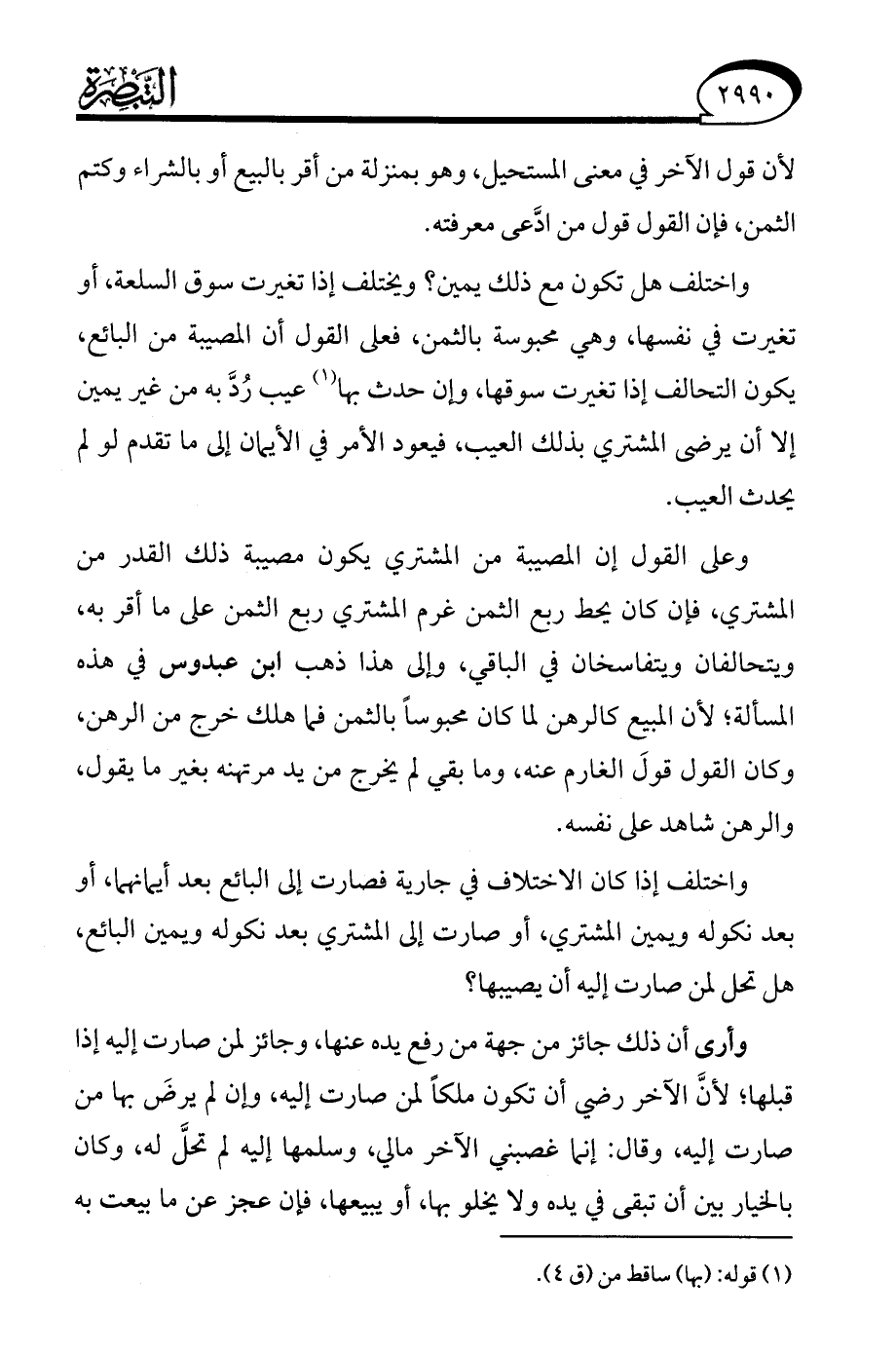 واختلف هل تكون مع ذلك يمين؟ ويختلف إذا تغيرت سوق السلعة، أو تغيرت في نفسها، وهي محبوسة بالثمن، فعلى القول أن المصيبة من البائع، يكون التحالف إذا تغيرت سوقها، وإن حدث بها (¬1) عيب رُدَّ به من غير يمين إلا أن يرضى المشتري بذلك العيب، فيعود الأمر في الأيمان إلى ما تقدم لو لم يحدث العيب.