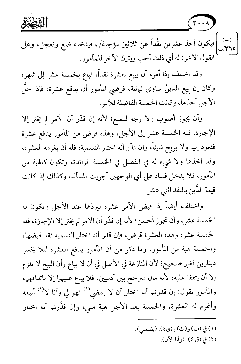 فيكون أخذ عشرين نقْدًا عن ثلاثين مؤجلة، فيدخله ضع وتعجل، وعلى القول الآخر: له أي ذلك أحب ويترك الآخر للمأمور.
