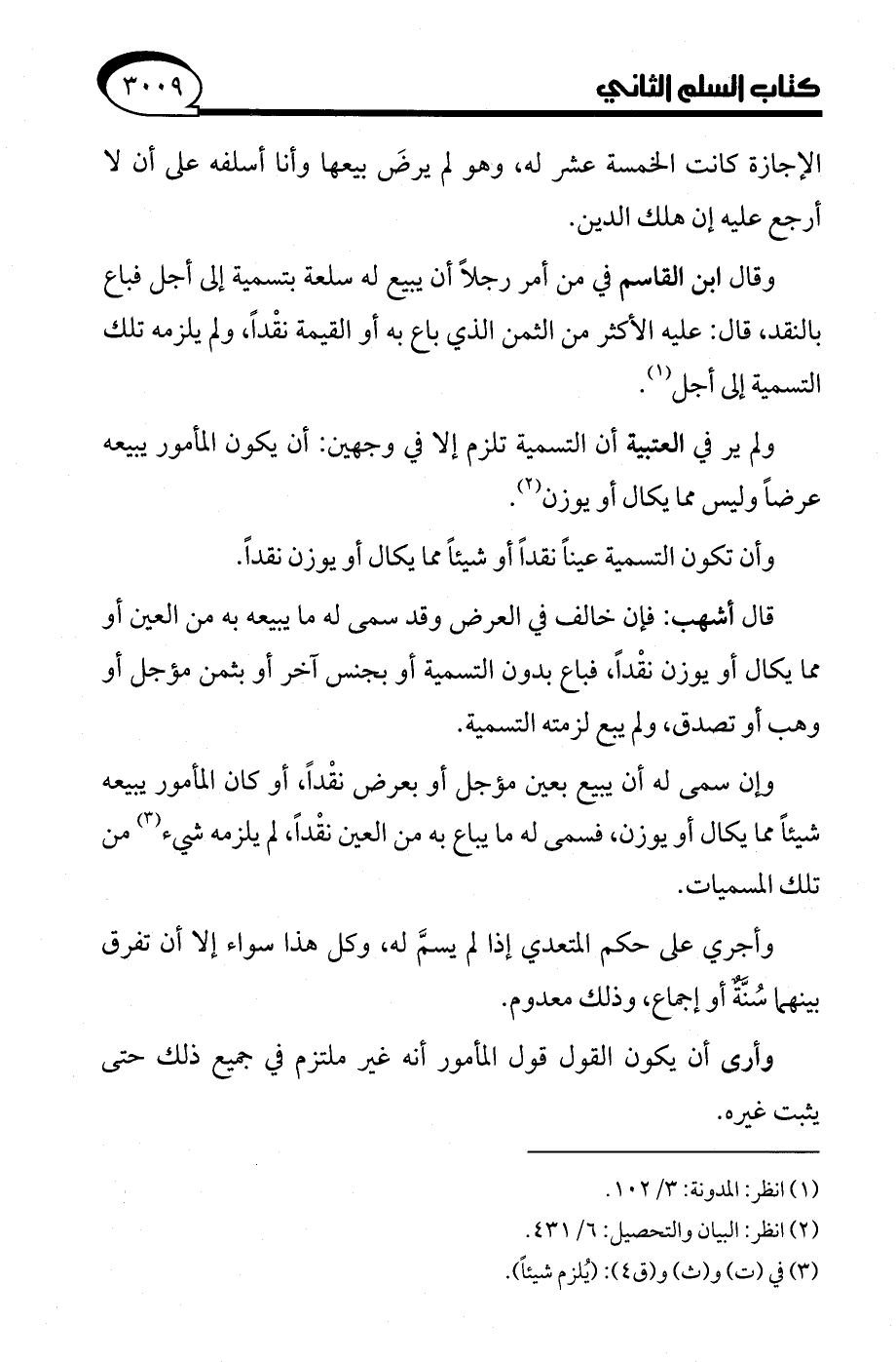 (¬2) انظر: البيان والتحصيل: 6/ 431.