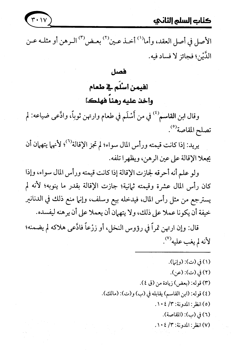 (¬4) قوله: (ابن القاسم) يقابله في (ب) و (ت): (مالك).