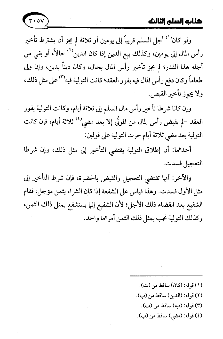 وإن كانا شرطا تأخير رأس مال السلم إلى ثلاثة أيام، وكانت التولية بفور العقد- لم يقبض رأس المال من المولَّى إلا بعد مضي (¬4) ثلاثة أيام، فإن كانت التولية بعد مضي ثلاثة أيام جرت التولية على قولين: