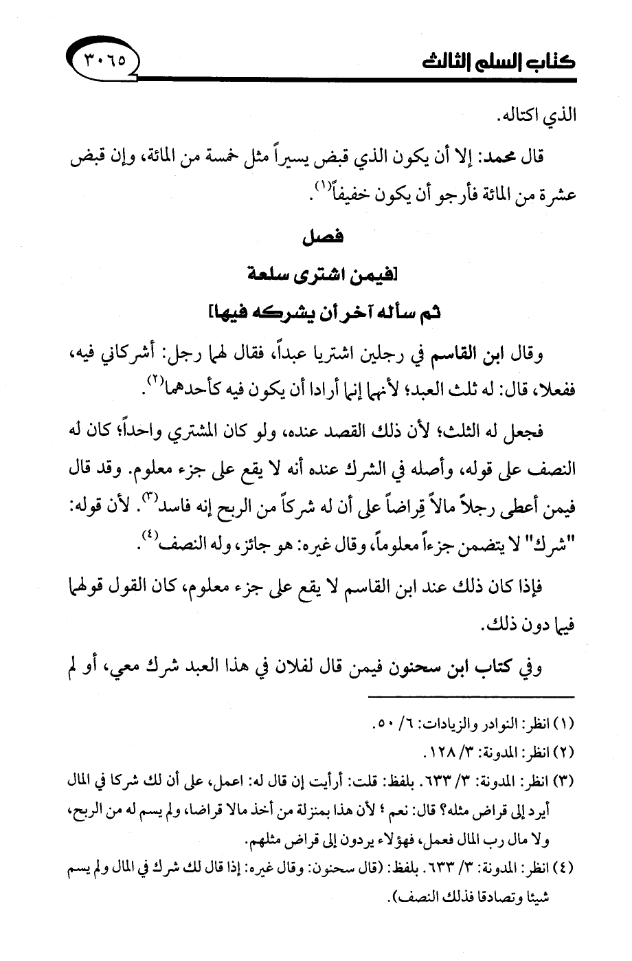 (¬4) انظر: المدونة: 3/ 633. بلفظ: (قال سحنون: وقال غيره: إذا قال لك شرك في المال ولم يسم شيئا وتصادقا فذلك النصف).