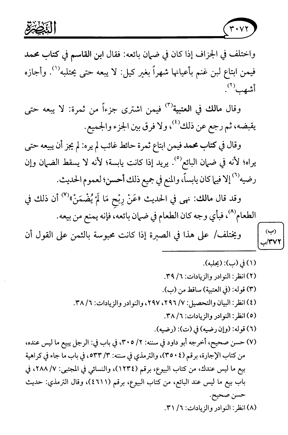 (¬4) انظر: البيان والتحصيل: 7/ 296، 297، والنوادر والزيادات: 6/ 38.