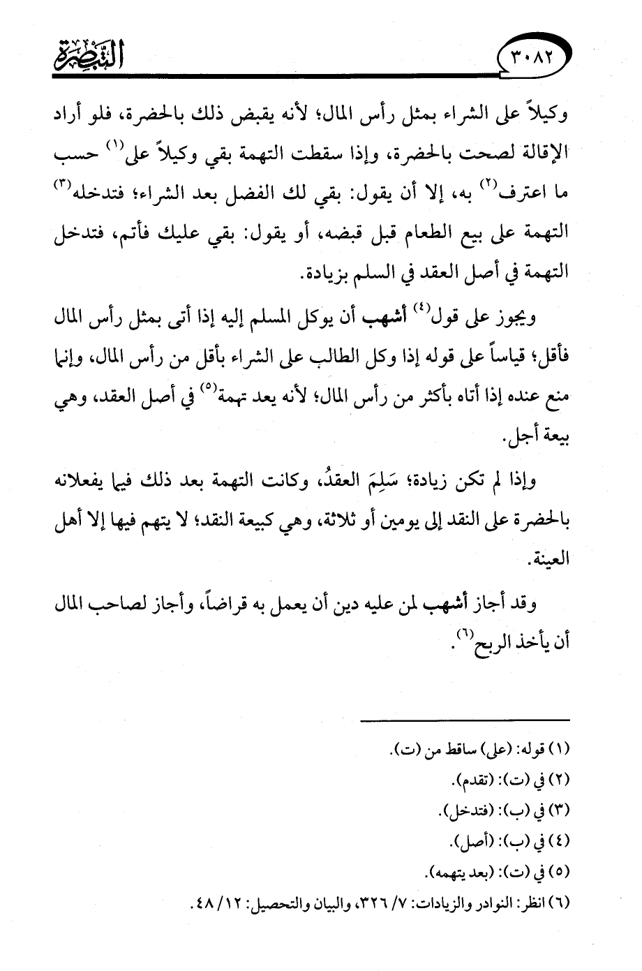 (¬6) انظر: النوادر والزيادات: 7/ 326، والبيان والتحصيل: 12/ 48.