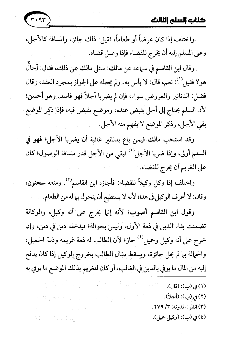 (¬3) انظر: المدونة: 3/ 279.
