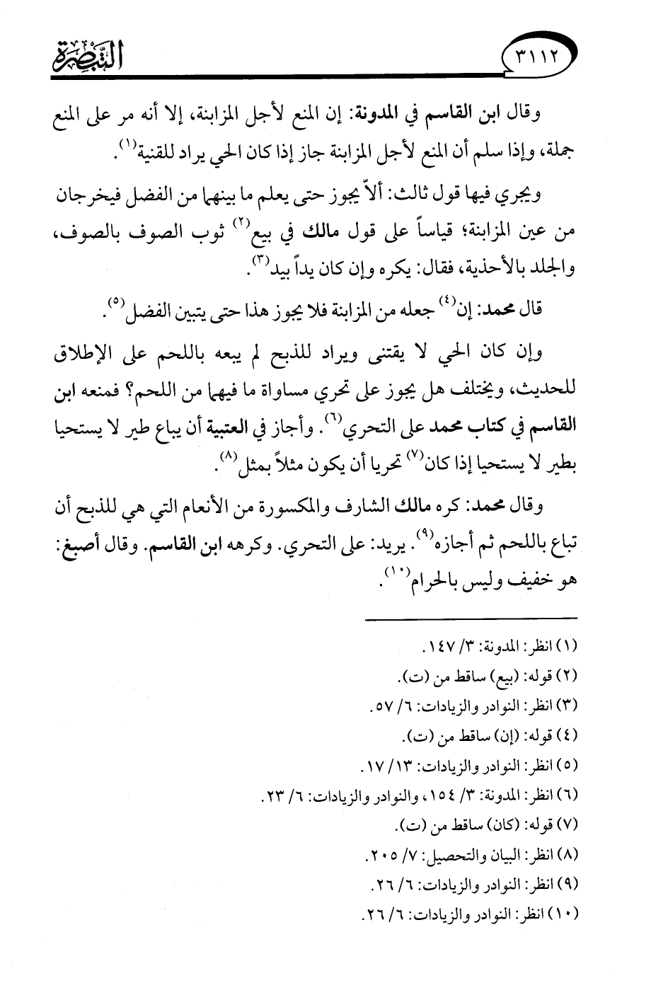 (¬10) انظر: النوادر والزيادات: 6/ 26.