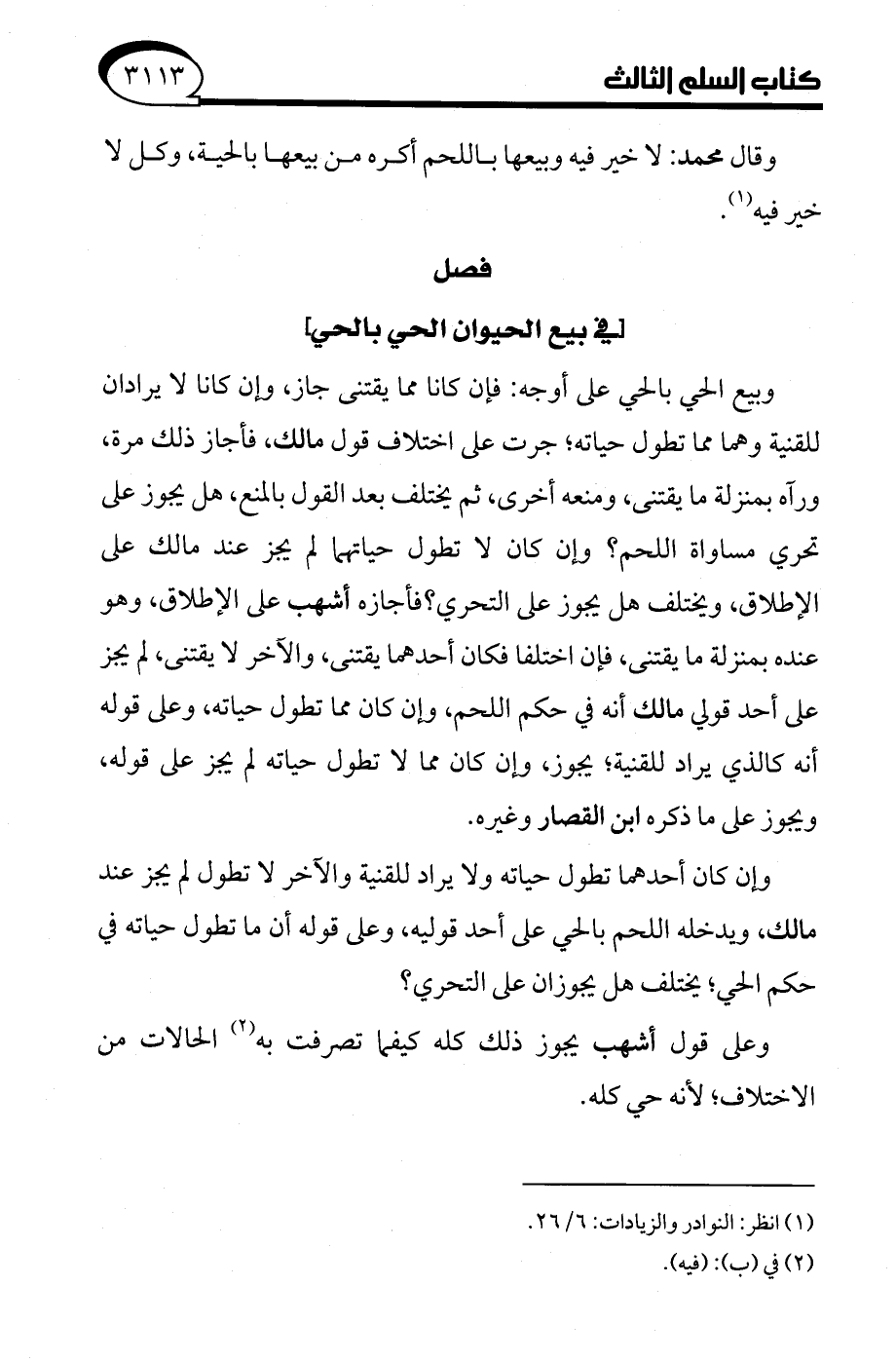 (¬1) انظر: النوادر والزيادات: 6/ 26.