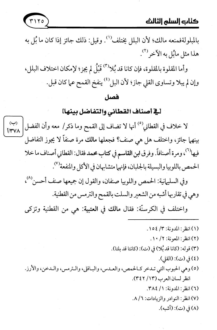 لا خلاف في القطاني (¬5) أنها لا تضاف إلى القمح وما ذكر معه وأن الفضل بينهما جائز، واختلف هل هي صنف؟ فجعلها مالك مرة صنفًا لا يجوز التفاضل فيها (¬6)، ومرة أصنافًا. وفرق ابن القاسم في كتاب محمد فقال: القطاني أصناف ما خلا الحمص باللوبيا والبسيلة بالجلبان، فإنهما متشابهان في الأكل والمنفعة (¬7).