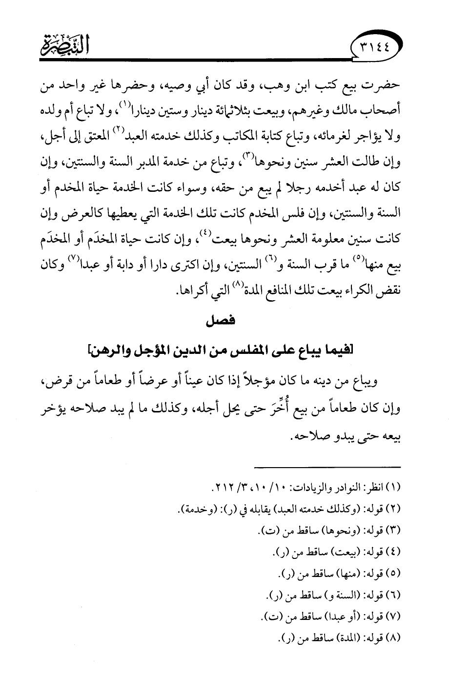 (¬1) انظر: النوادر والزيادات: 10/ 10، 3/ 212.