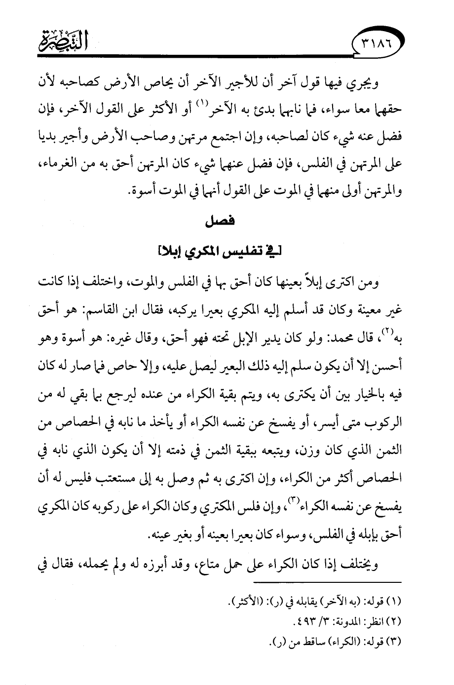 (¬3) قوله: (الكراء) ساقط من (ر).