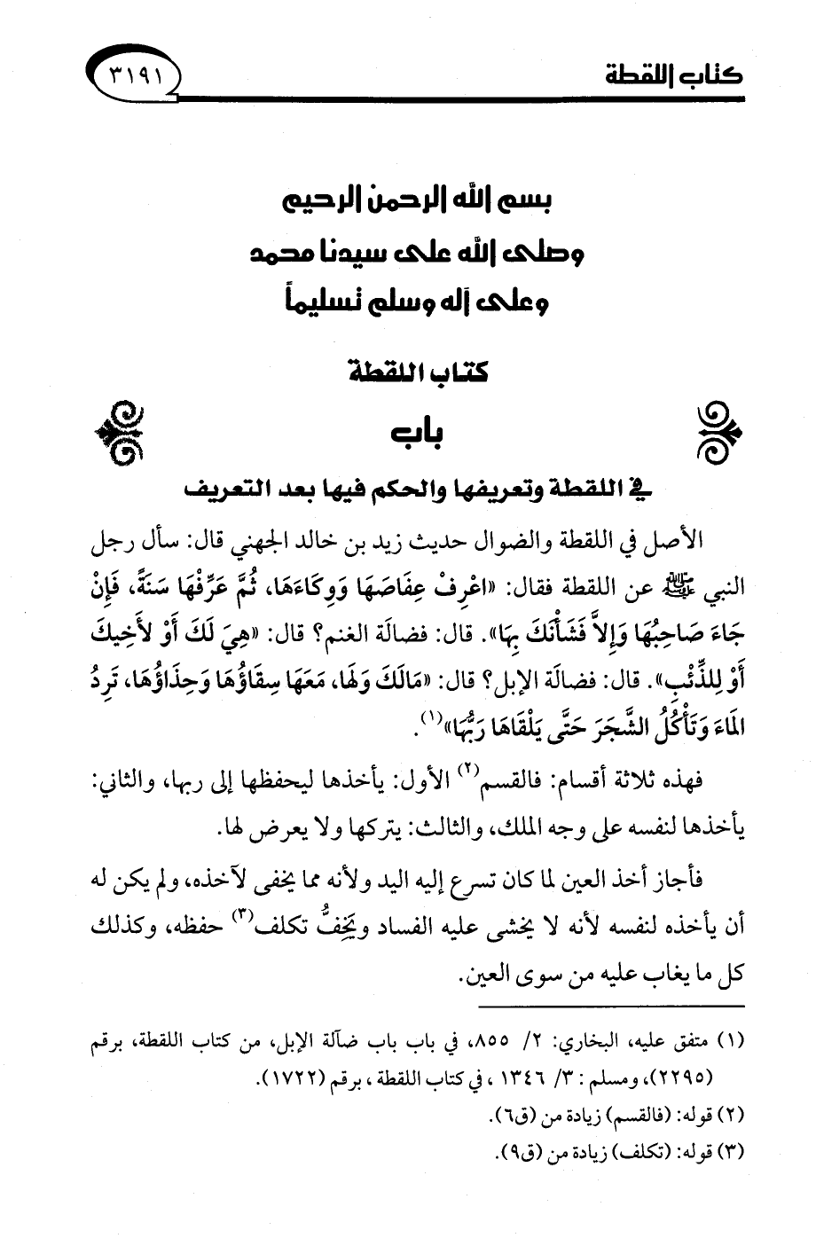 (¬1) متفق عليه، البخاري: 2/ 855، في باب باب ضآلة الإبل، من كتاب اللقطة، برقم (2295)، ومسلم: 3/ 1346، في كتاب اللقطة، برقم (1722).