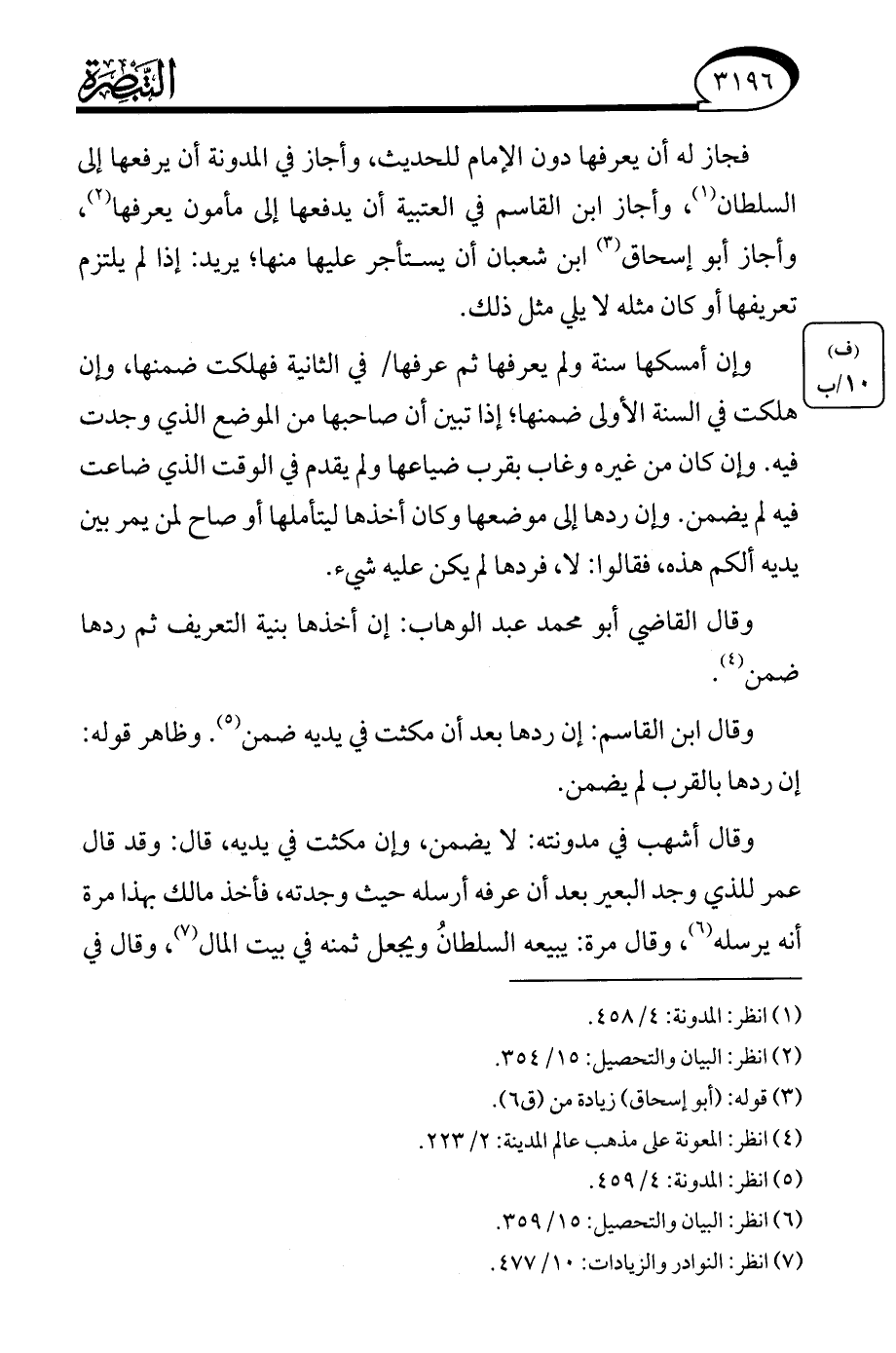 (¬7) انظر: النوادر والزيادات: 10/ 477.
