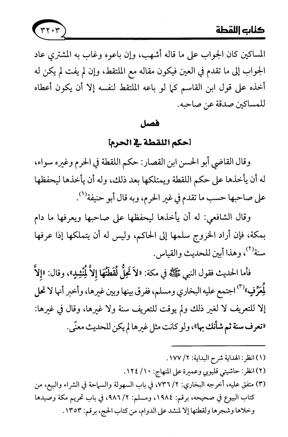 فأما الحديث فقول النبي - صلى الله عليه وسلم - في مكة: "لاَ تَحِلُّ لُقَطتهَا إِلَّا لِمُنشِدٍ"، وقال: "إِلَّا لمُعَرِّفٍ" (¬3) اجتمع عليه البخاري ومسلم، ففرق بينها وبين غيرها، وأخبر أنها لا تحل إلا للتعريف لا لغير ذلك ولم يوقت للتعريف سنة ولا غيرها، وقال في غيرها: "تعرف سنة ثم شأنك بها"، ولو كانت مثل غيرها لم يكن للحديث معنًى.
