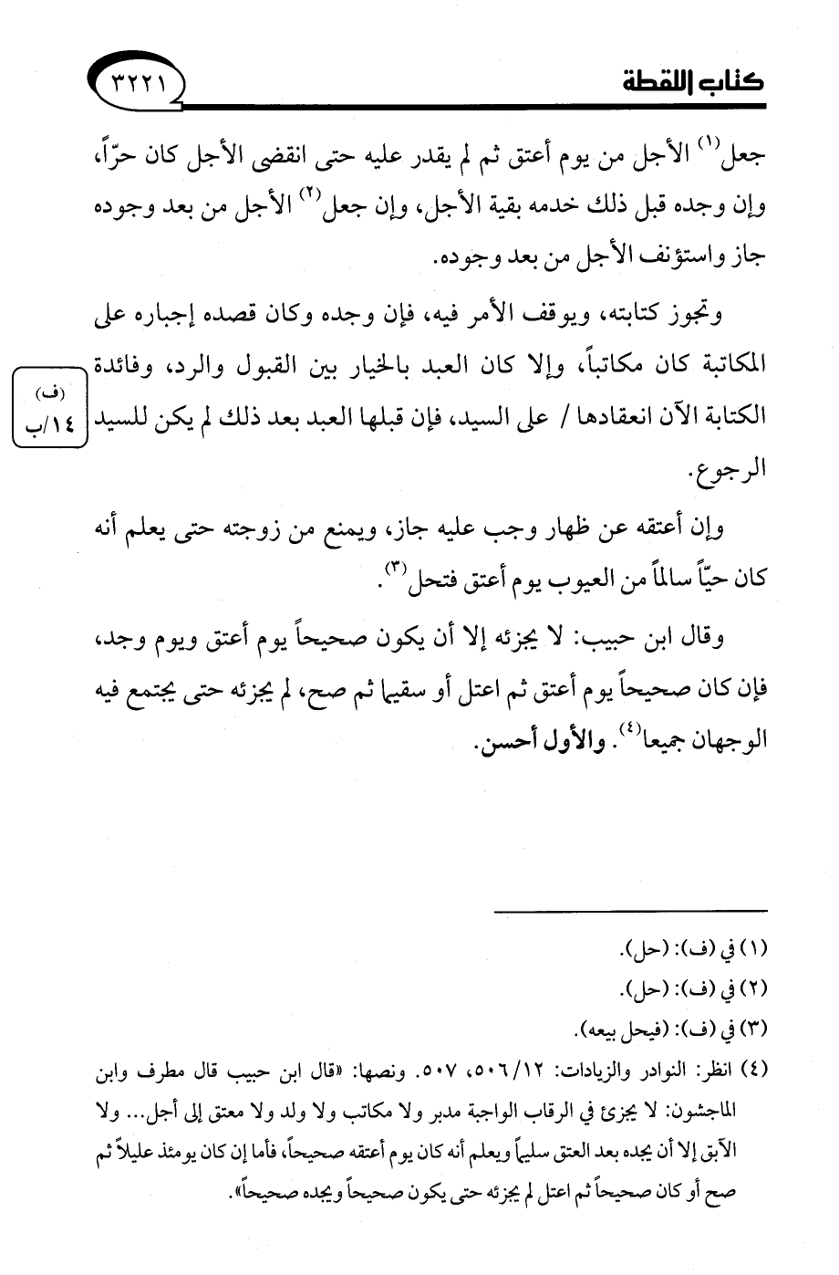 (¬4) انظر: النوادر والزيادات: 12/ 506، 507. ونصها: "قال ابن حبيب قال مطرف وابن الماجشون: لا يجزئ في الرقاب الواجبة مدبر ولا مكاتب ولا ولد ولا معتق إلى أجل. . . ولا الآبق إلا أن يجده بعد العتق سليمًا ويعلم أنه كان يوم أعتقه صحيحًا، فأما إن كان يومئذ عليلًا ثم صح أو كان صحيحًا ثم اعتل لم يجزئه حتى يكون صحيحًا ويجده صحيحًا".