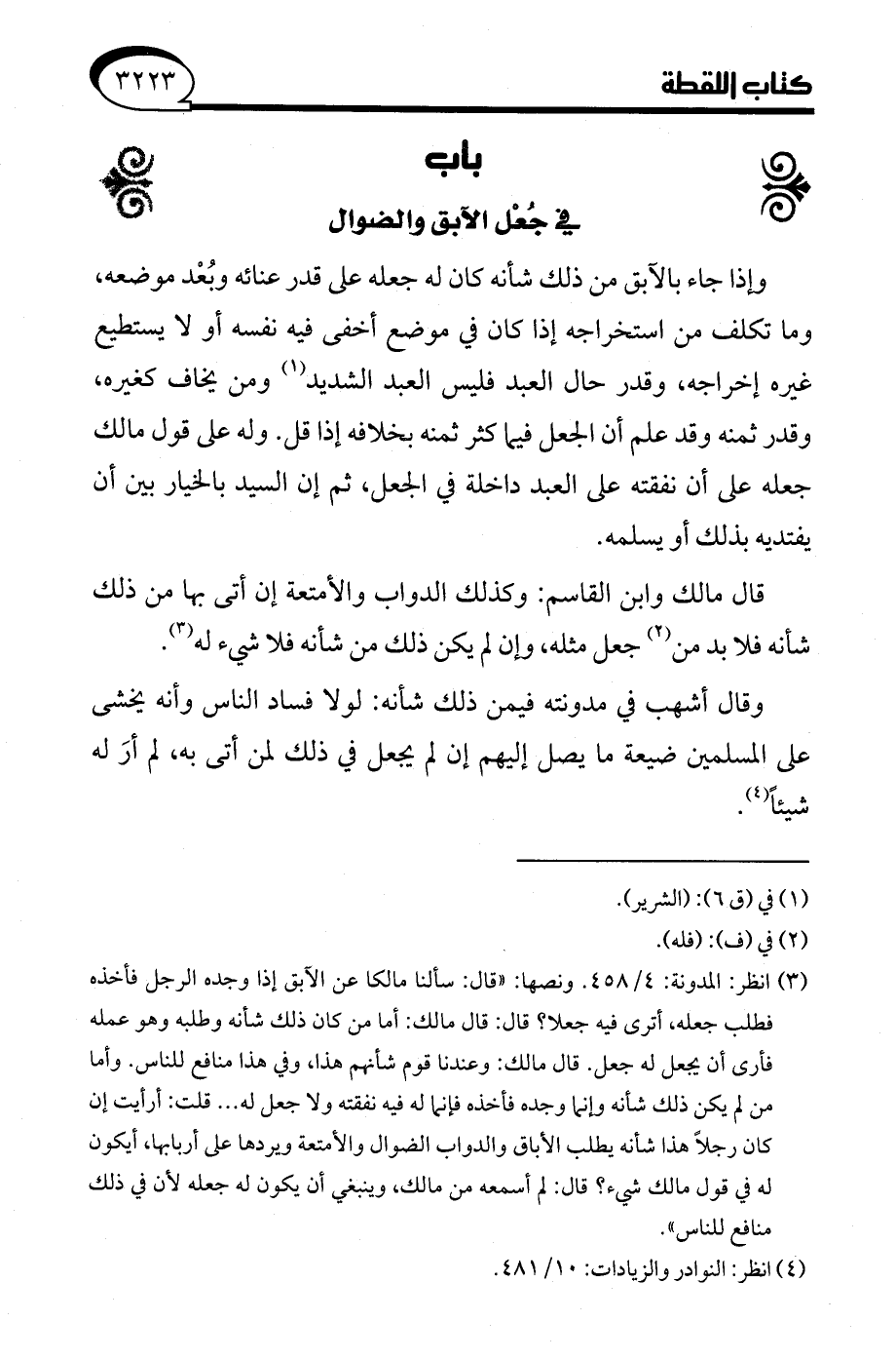 (¬4) انظر: النوادر والزيادات: 10/ 481.
