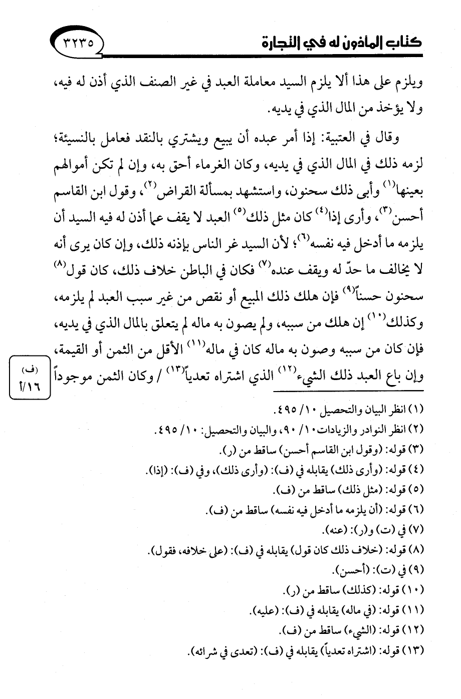 (¬1) انظر البيان والتحصيل 10/ 495.