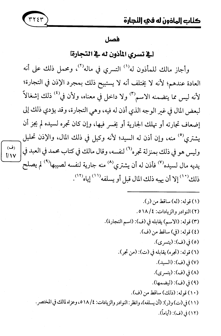 (¬11) في (ت) و (ر): (أن يسلفه)، وانظر: النوادر والزيادات: 4/ 518، وعزاه لمالك في المختصر.