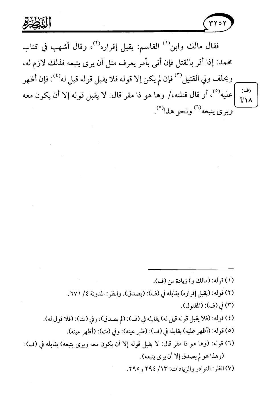(¬7) انظر: النوادر والزيادات: 13/ 294 و 295.