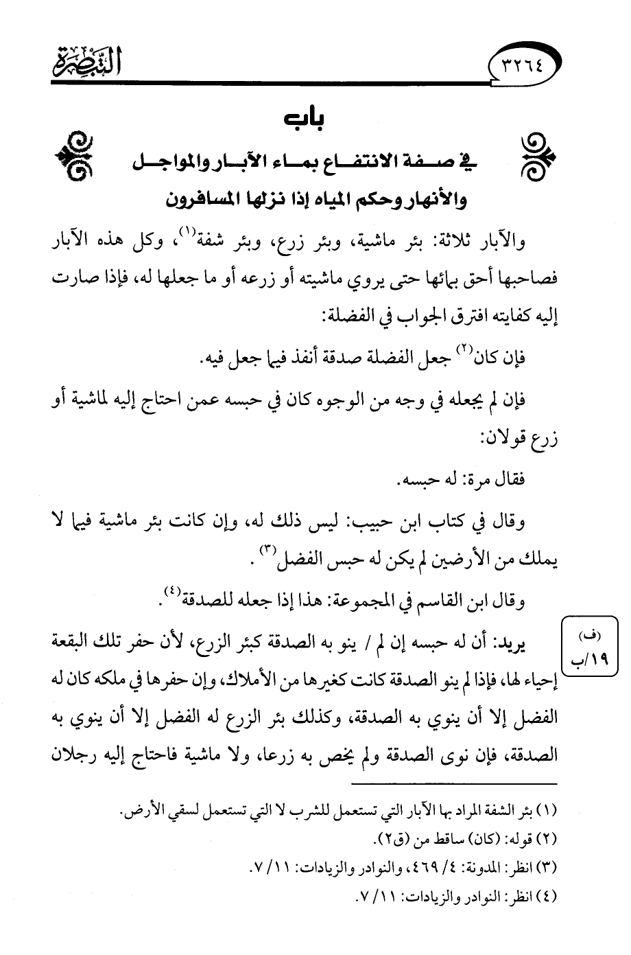 باب في صفة الانتفاع بماء الآبار والمواجل والأنهار وحكم المياه إذا نزلها المسافرون