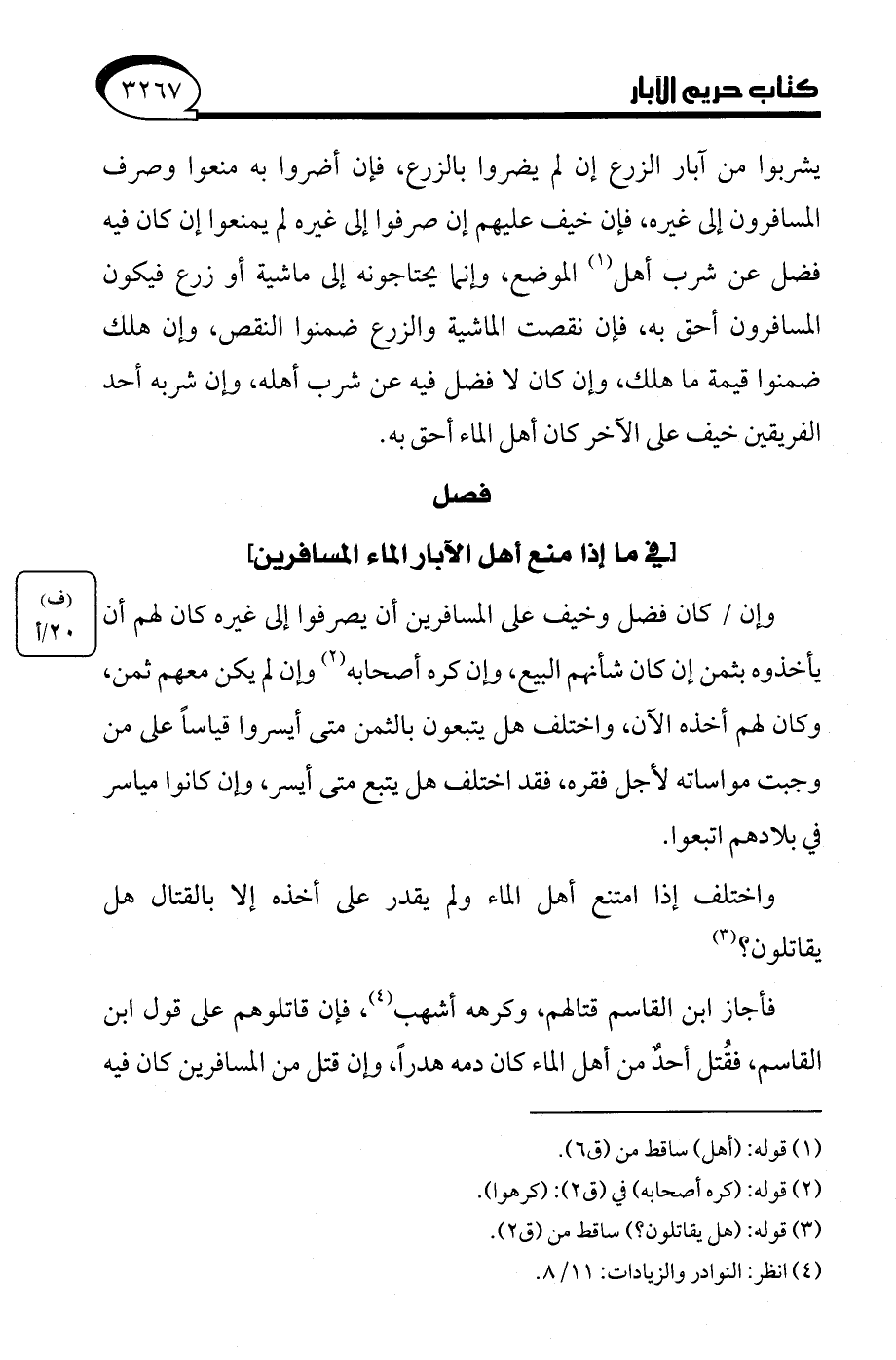 واختلف إذا امتنع أهل الماء ولم يقدر على أخذه إلا بالقتال هل يقاتلون؟ (¬3)