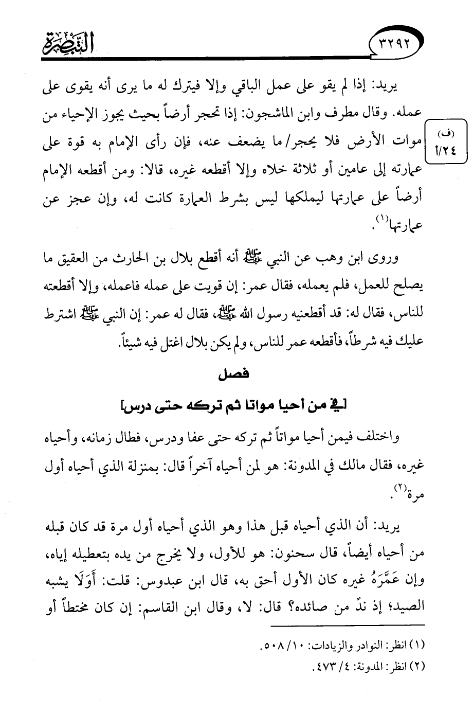 (¬1) انظر: النوادر والزيادات: 10/ 508.