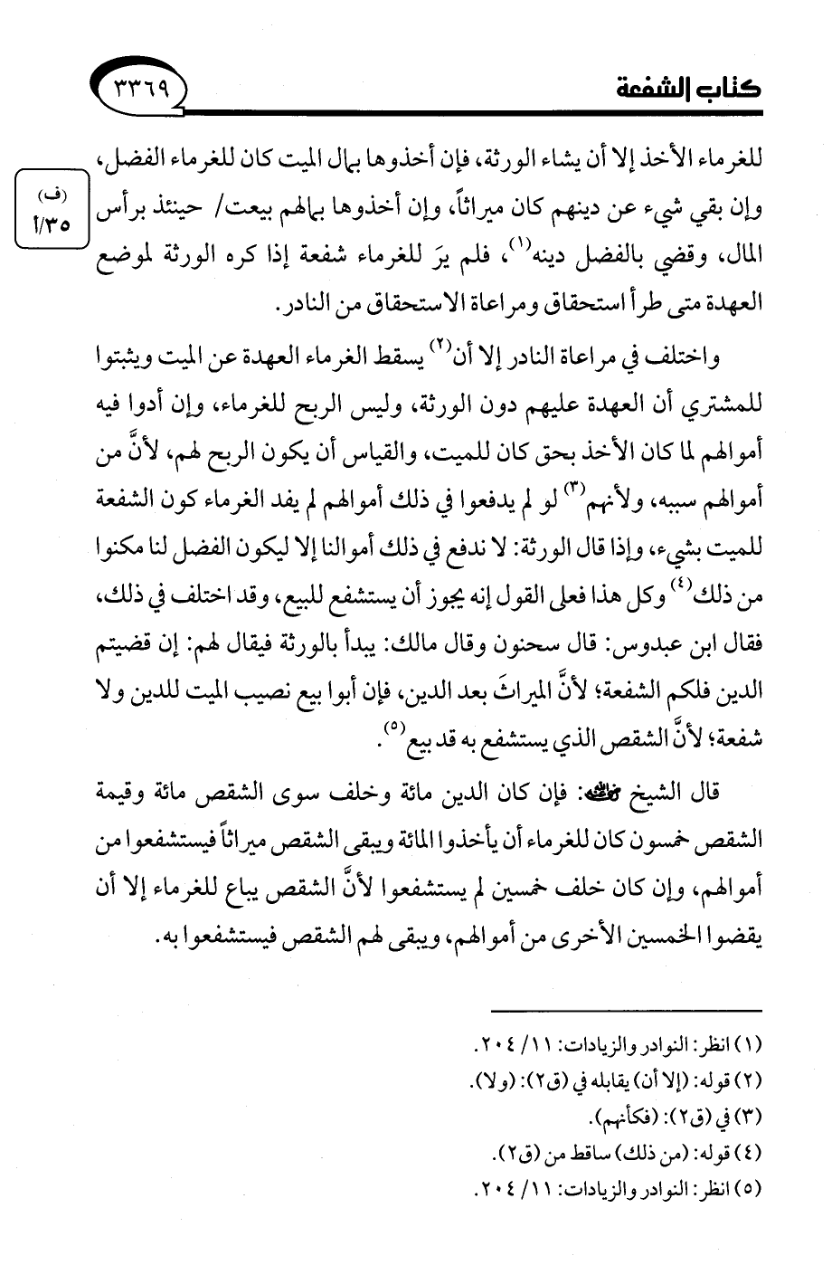 (¬5) انظر: النوادر والزيادات: 11/ 204.