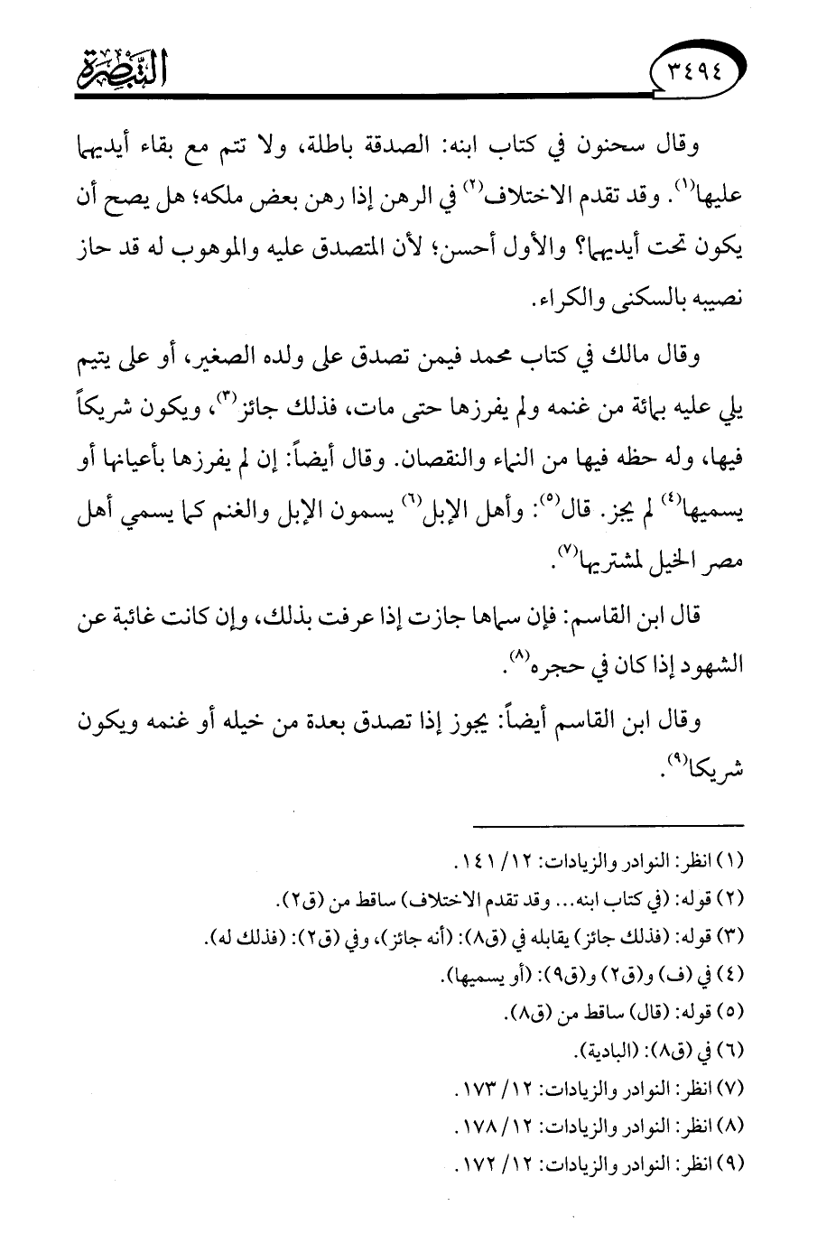 (¬9) انظر: النوادر والزيادات: 12/ 172.