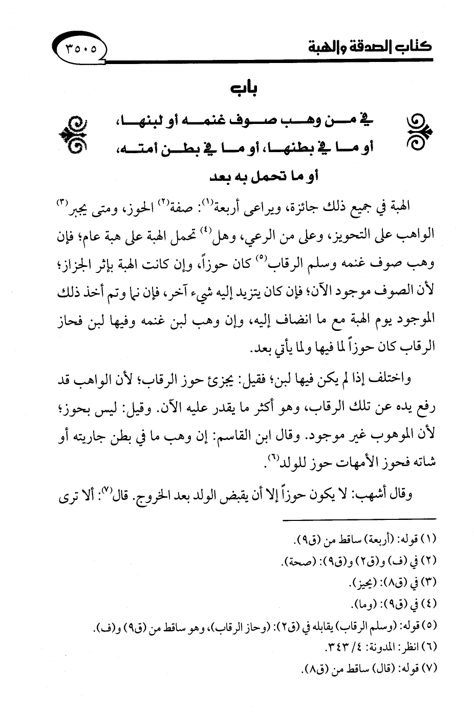باب في من وهب صوف غنمه أو لبنها، أو ما في بطنها، أو ما في بطن أمته أو ما تحمل به بعد