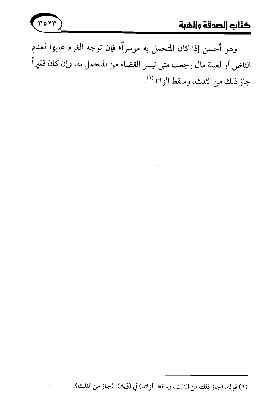 وهو أحسن إذا كان المتحمل به موسرًا، فإن توجه الغرم عليها لعدم الناض أو لغيبة مال رجعت متى تيسر القضاء من المتحمل به، وإن كان فقيرًا جاز ذلك من الثلث، وسقط الزائد (¬1).