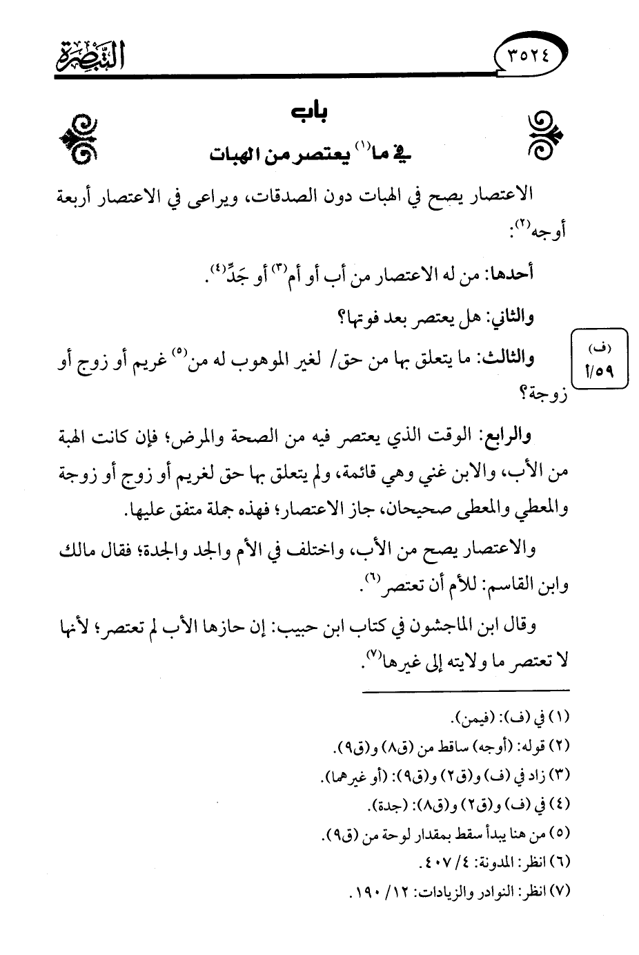 (¬7) انظر: النوادر والزيادات: 12/ 190.