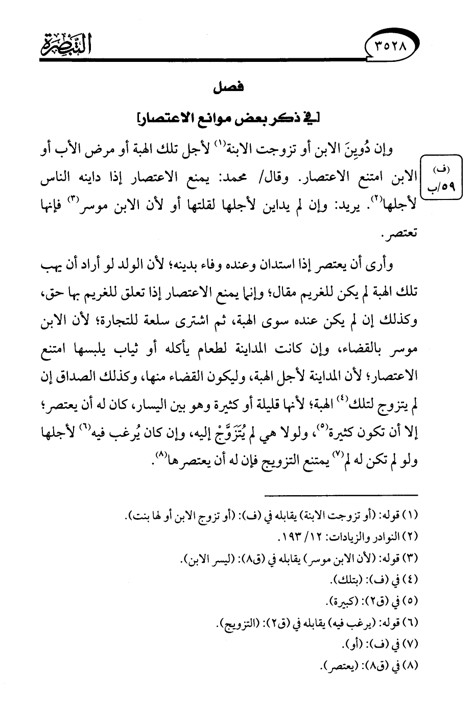 (¬3) قوله: (لأن الابن موسر) يقابله في (ق 8): (ليسر الابن).