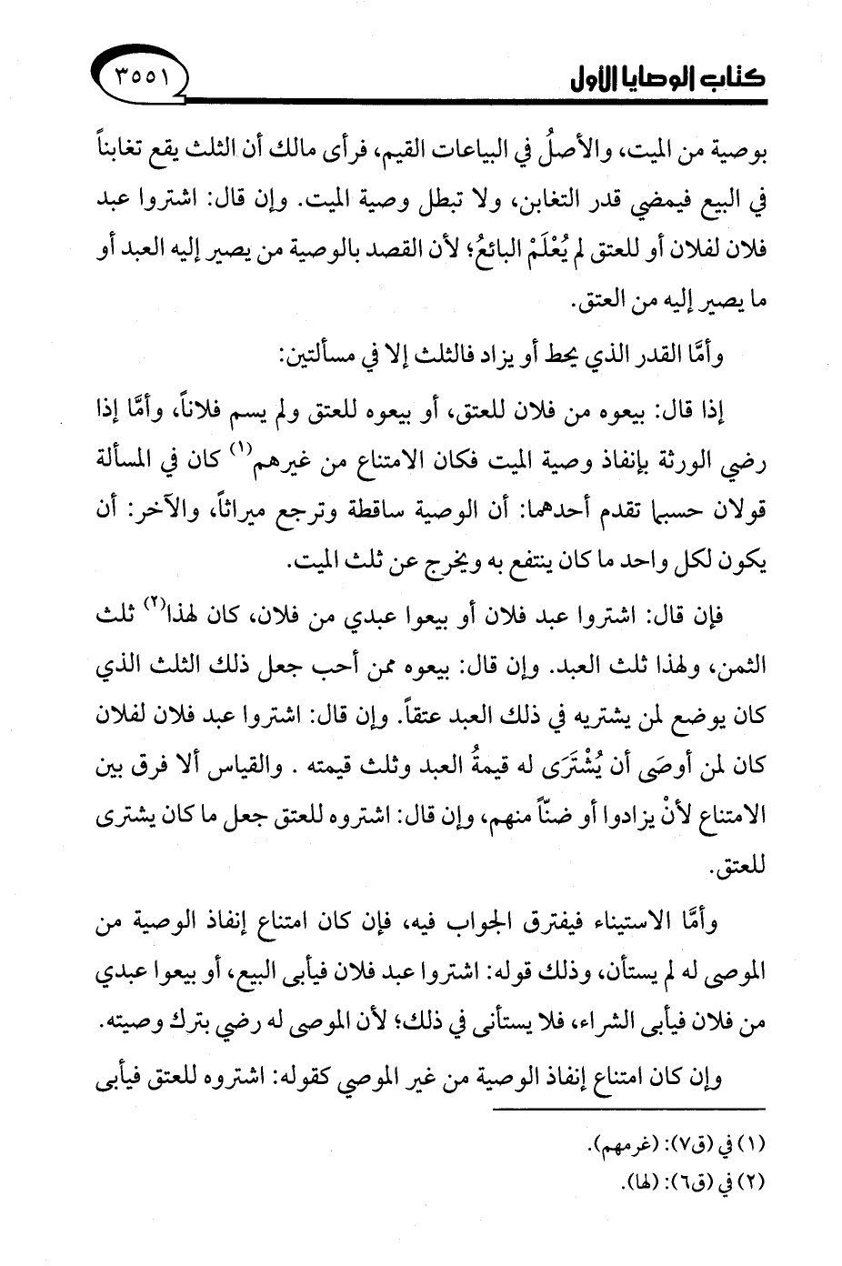 بوصية من الميت، والأصلُ في البياعات القيم، فرأى مالك أن الثلث يقع تغابنًا في البيع فيمضي قدر التغابن، ولا تبطل وصية الميت. وإن قال: اشتروا عبد فلان لفلان أو للعتق لم يُعْلَمْ البائعُ؛ لأن القصد بالوصية من يصير إليه العبد أو ما يصير إليه من العتق.