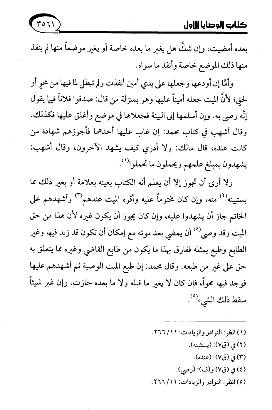 (¬5) انظر: النوادر والزيادات: 11/ 266.